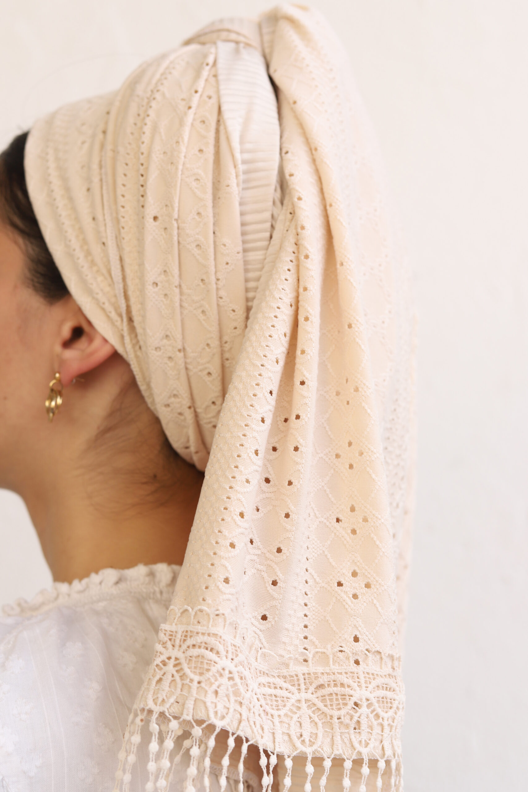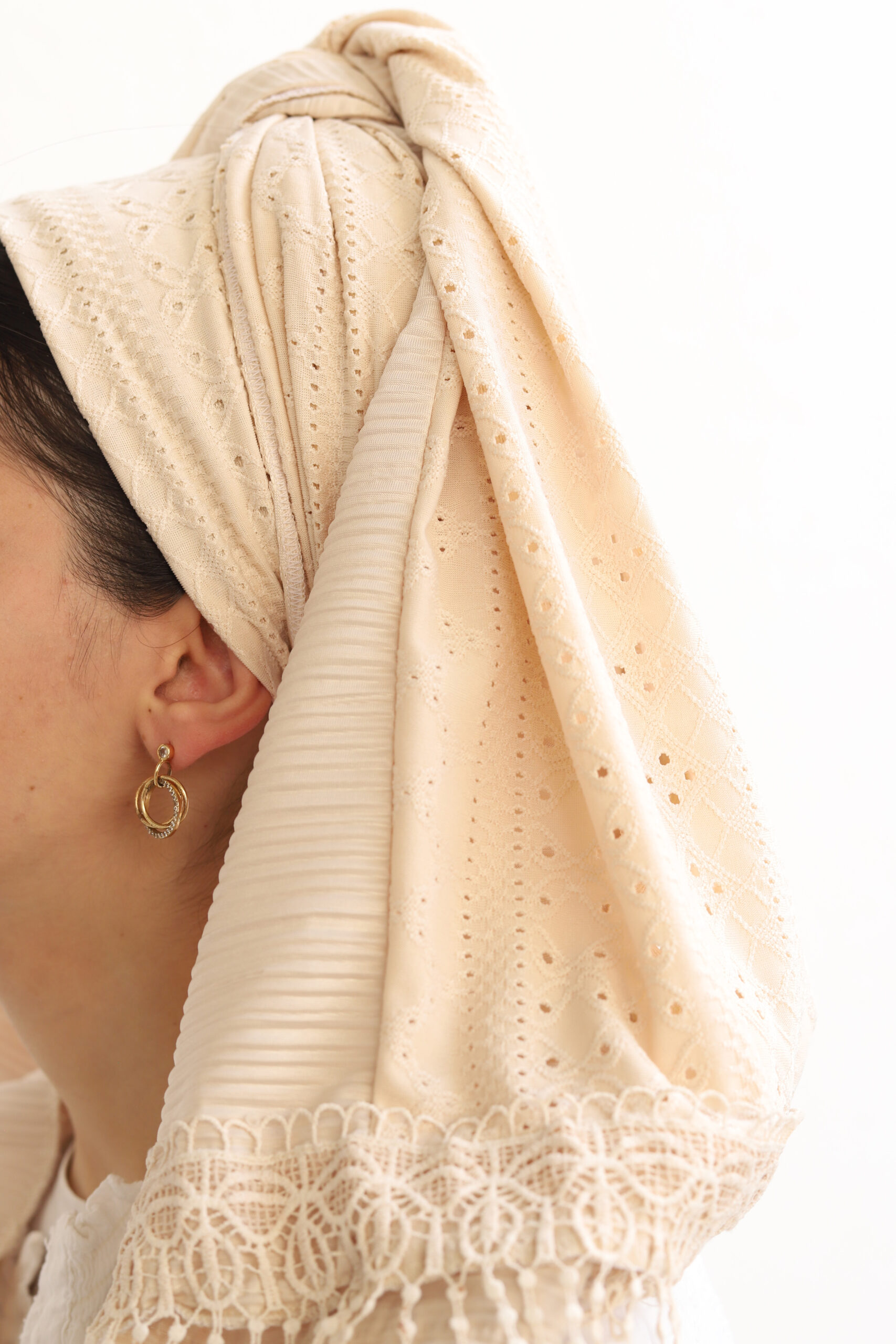 מטפחת יפה ונוחה מבד פליסה ובד מדוגם בגוון זהה.